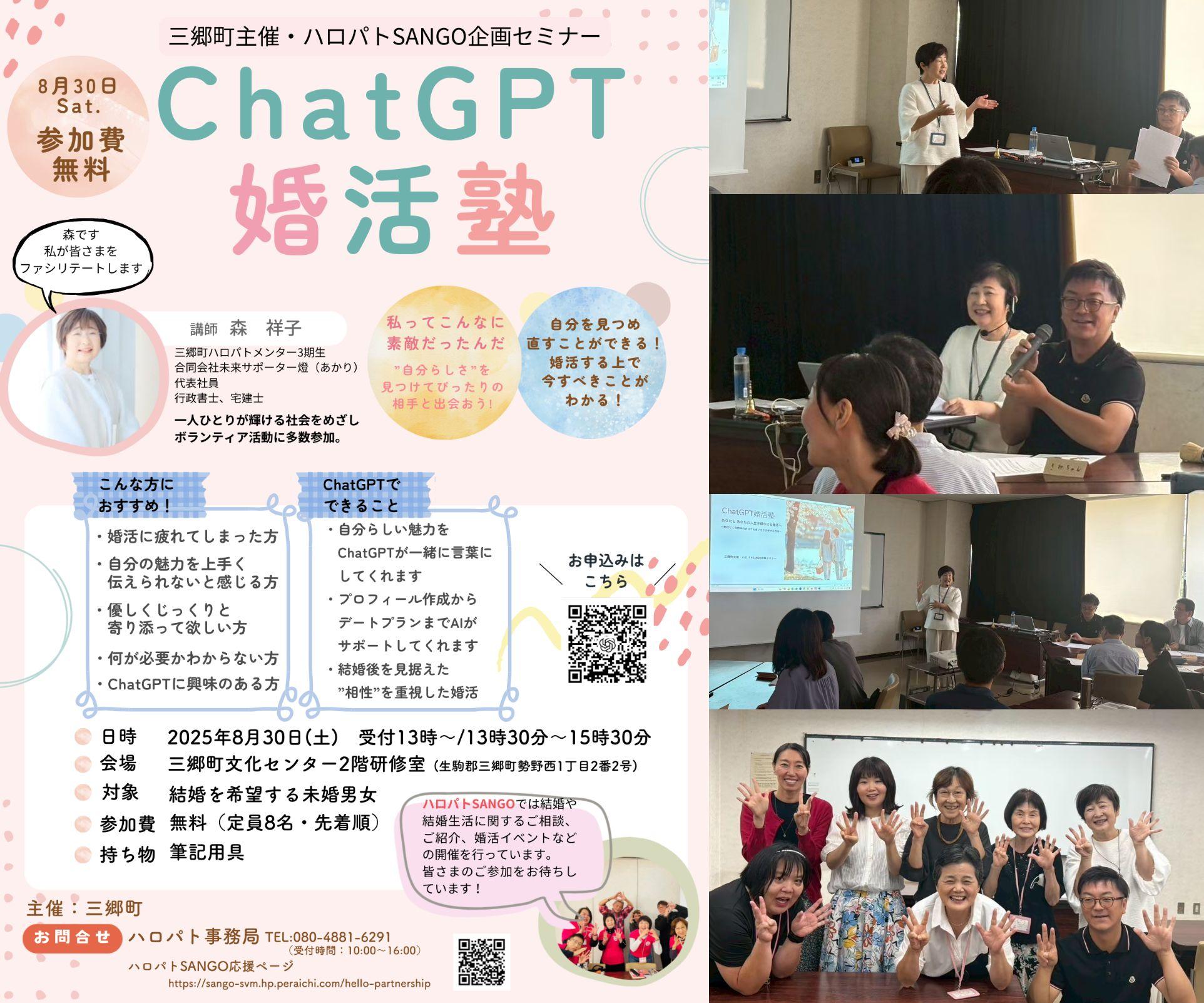 2024年8月30日、三郷町主催・ハロパトSANGO企画によるセミナー 「ChatGPT婚活塾」 を開催しました。